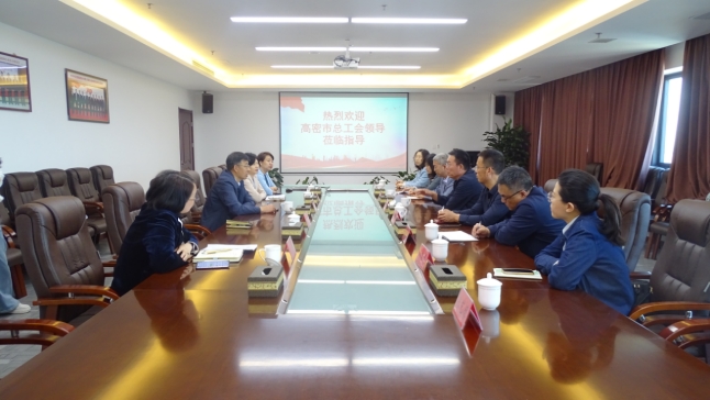 5月8日,高密市总工会党组书记、常务副主席苏钊一行9人赴集团进行实地考察,参观学习非公企业产业工人队伍建设改革等方面的先进经验做法。胶州市总工会党组书记、常务副主席孙勇、办公室主任张静、生产部部长周琴,集团党委副书记、监事会主席张桂香、工会主席刘博等陪同考察。